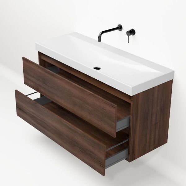 | Bellanti Fiore/Jenthe badmeubel 120x46 2 softclose laden walnoot greeploos keramische wastafel wit glans zonder kraangaten |