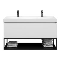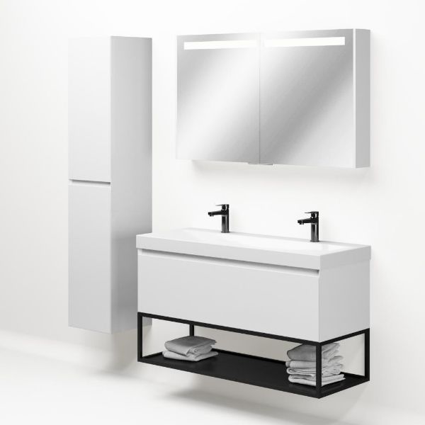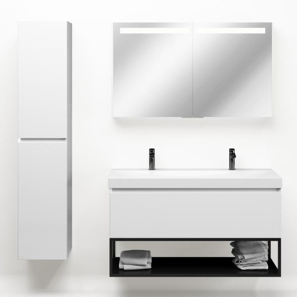 Bellanti Solo/Tela/Jenthe badmeubel 120x46 1 softclose lade wit hoogglans greeploos keramische wastafel wit glans met 2 kraangaten met mat zwart metalen frame
