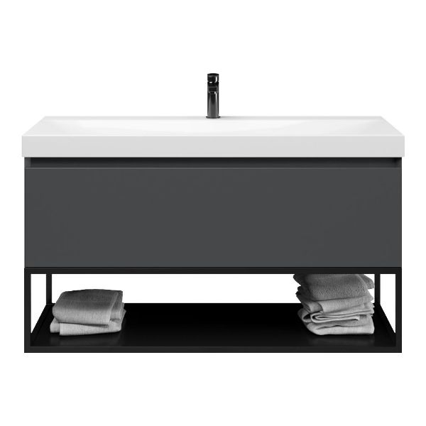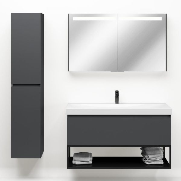 Bellanti Solo/Tela/Jenthe badmeubel 120x46 1 softclose lade antraciet mat greeploos keramische wastafel wit glans met 1 kraangat met mat zwart metalen frame