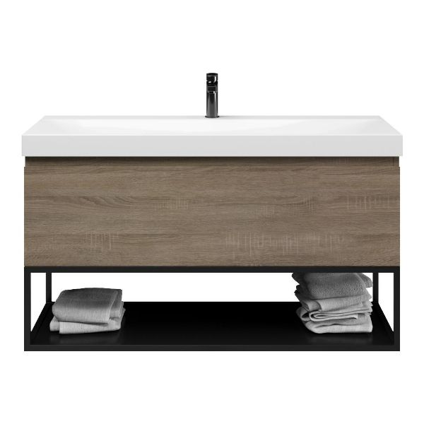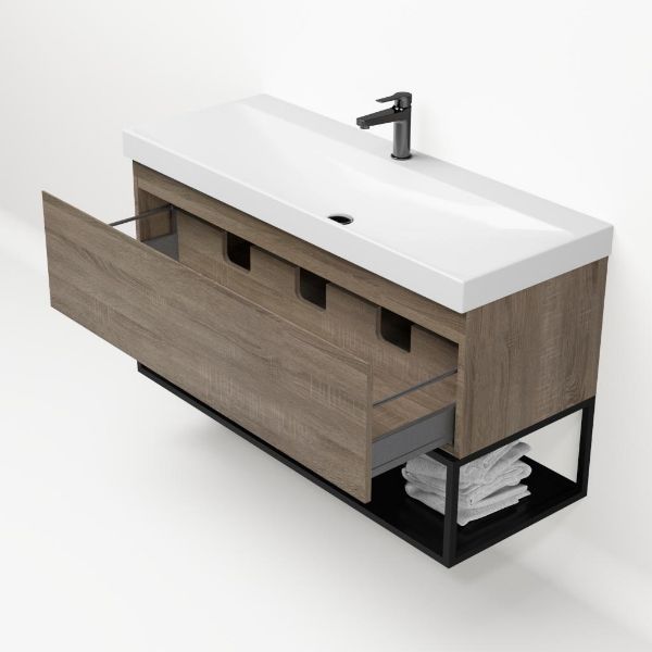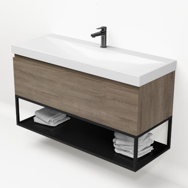 Bellanti Solo/Tela/Jenthe badmeubel 120x46 1 softclose lade eiken donker greeploos keramische wastafel wit glans met 1 kraangat met mat zwart metalen frame