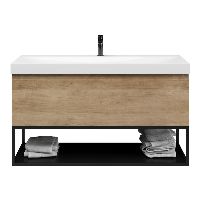 Greeploos badkamermeubel in de kleur olm is 120 cm breed.  De wastafel is vervaardig in keramiek en heeft de kleur wit glans. Dit badkamermeubel met deze wastafel is leverbaar tussen de 60 cm t/m 140 cm