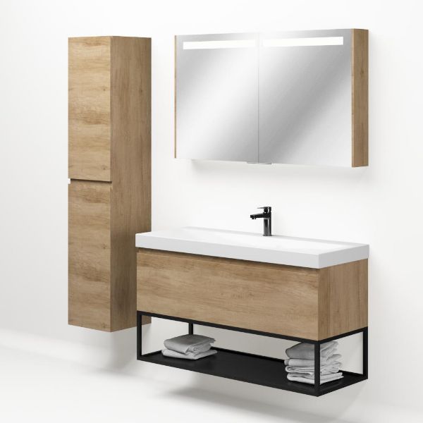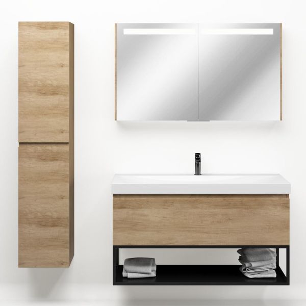 Bellanti Solo/Tela/Jenthe badmeubel 120x46 1 softclose lade olm greeploos keramische wastafel wit glans met 1 kraangat met mat zwart metalen frame