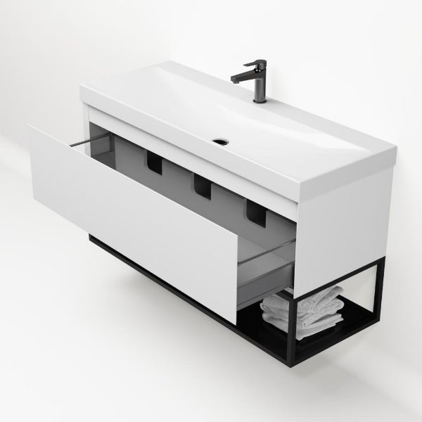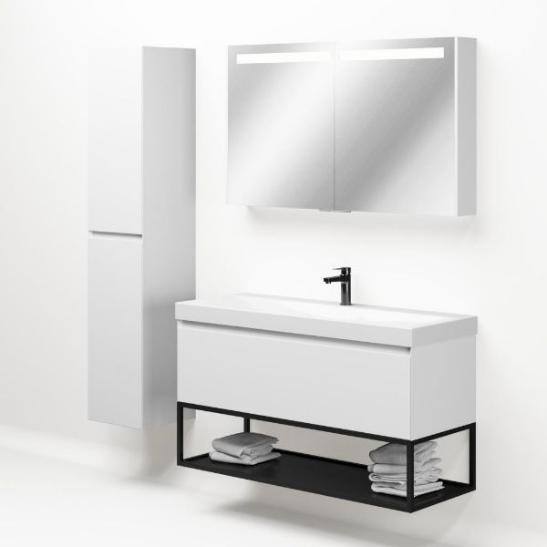 Bellanti Solo/Tela/Jenthe badmeubel 120x46 1 softclose lade wit mat greeploos keramische wastafel wit glans met 1 kraangat met mat zwart metalen frame