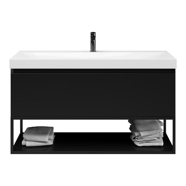 Bellanti Solo/Tela/Jenthe badmeubel 120x46 1 softclose lade zwart mat greeploos keramische wastafel wit glans met 1 kraangat met mat zwart metalen frame