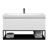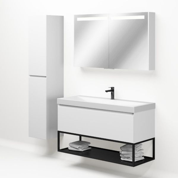 Bellanti Solo/Tela/Jenthe badmeubel 120x46 1 softclose lade wit mat greeploos keramische wastafel wit mat met 1 kraangat met mat zwart metalen frame