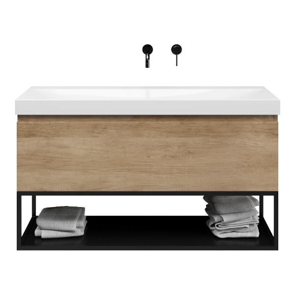 Bellanti Solo/Tela/Jenthe badmeubel 120x46 1 softclose lade olm greeploos keramische wastafel wit glans zonder kraangaten met mat zwart metalen frame