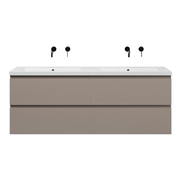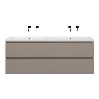 Bellanti Gisella/Esta-Q badmeubel 160x46 4 softclose laden taupe greeploos quartz dubbele wastafel mat wit zonder kraangaten