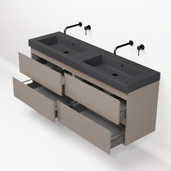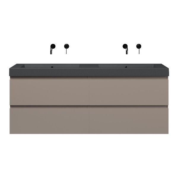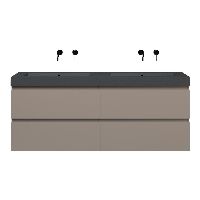 Bellanti Gisella/Esta-Q badmeubel 160x46 4 softclose laden taupe greeploos quartz dubbele wastafel mat grijs zonder kraangaten