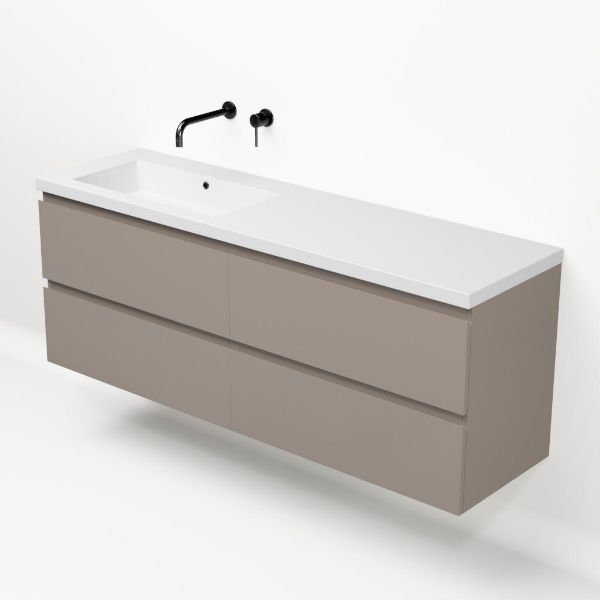Bellanti Gisella/Esta badmeubel 160x46 4 softclose laden taupe greeploos polystone enkele wastafel links zonder kraangat