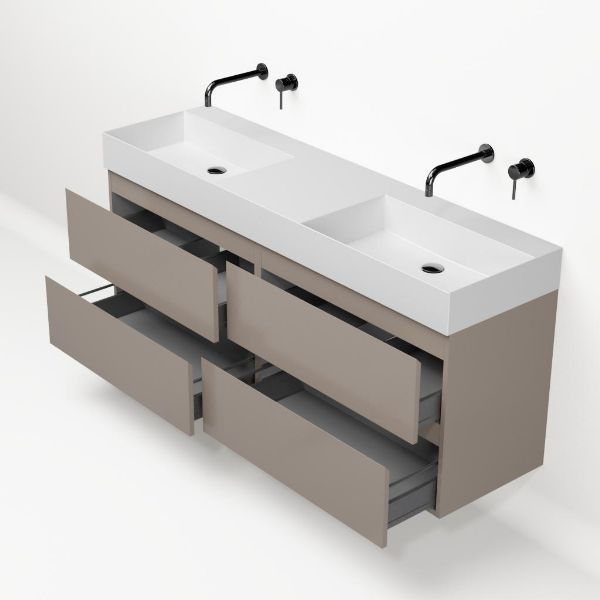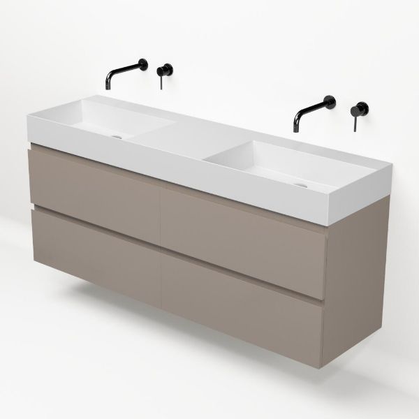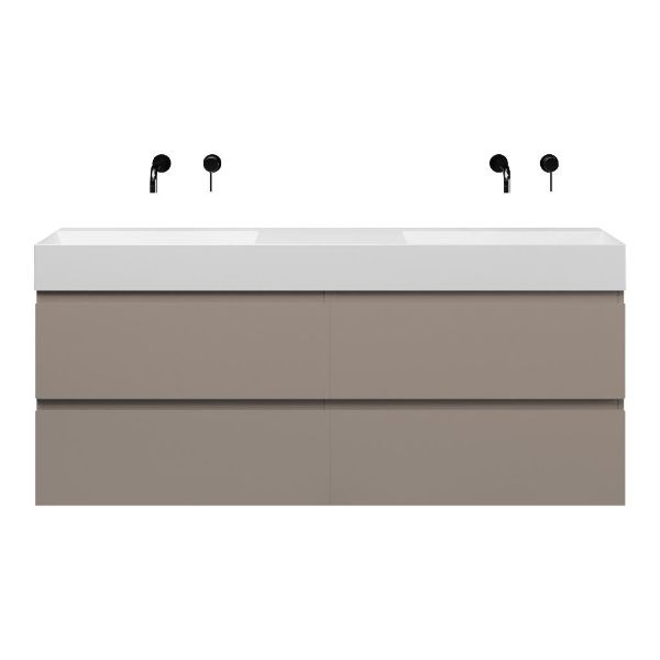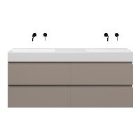 | | Bellanti Gisella/Azzurra badmeubel 160x46 4 softclose laden taupe greeploos keramiek dubbele wastafel mat wit zonder kraangaten |
