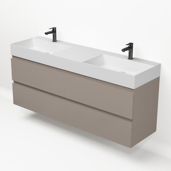 | Bellanti Gisella/Azzurra badmeubel 160x46 4 softclose laden taupe greeploos keramiek dubbele wastafel mat wit met 2 kraangaten |