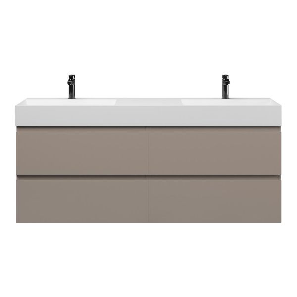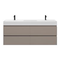 | | Bellanti Gisella/Azzurra badmeubel 160x46 4 softclose laden taupe greeploos keramiek dubbele wastafel mat wit met 2 kraangaten |