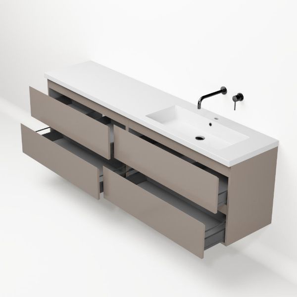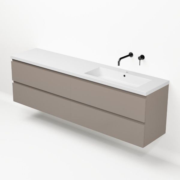| Bellanti Gisella/Esta badmeubel 200x46 4 softclose laden taupe greeploos polystone enkele wastafel rechts wit zonder kraangat |