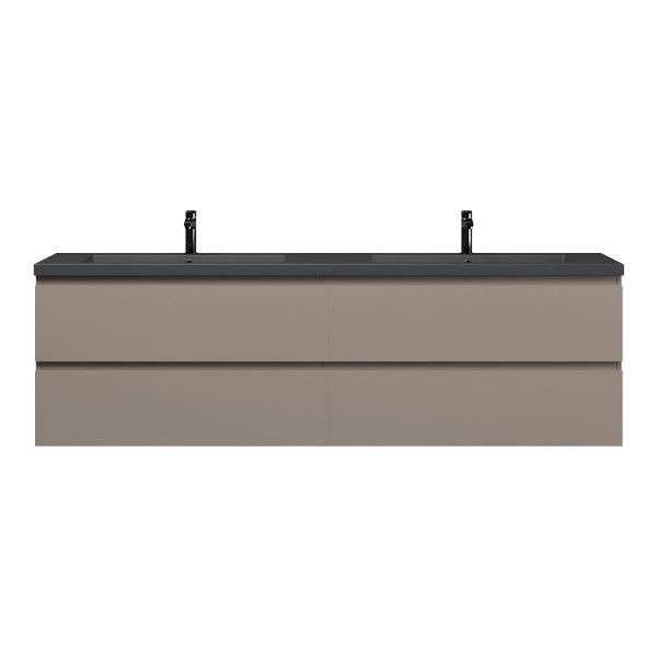 | Bellanti Gisella/Esta-q badmeubel 200x46 4 softclose laden taupe greeploos quartz dubbele wastafel mat grijs met 2 kraangaten |