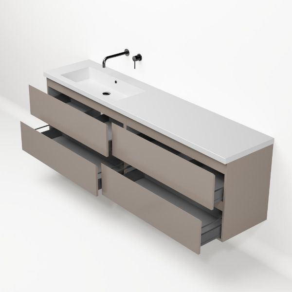 | Bellanti Gisella/Esta-q badmeubel 200x46 4 softclose laden taupe greeploos quartz enkele wastafel links mat wit zonder kraangat |