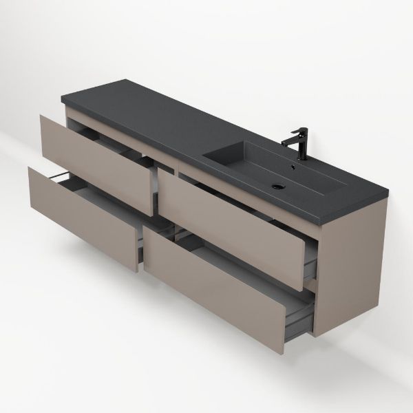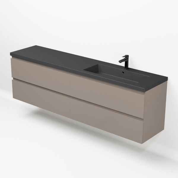 | Bellanti Gisella/Esta-q badmeubel 200x46 4 softclose laden taupe greeploos quartz enkele wastafel rechts mat grijs met 1 kraangat |