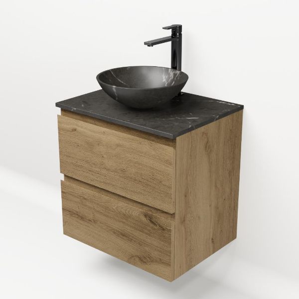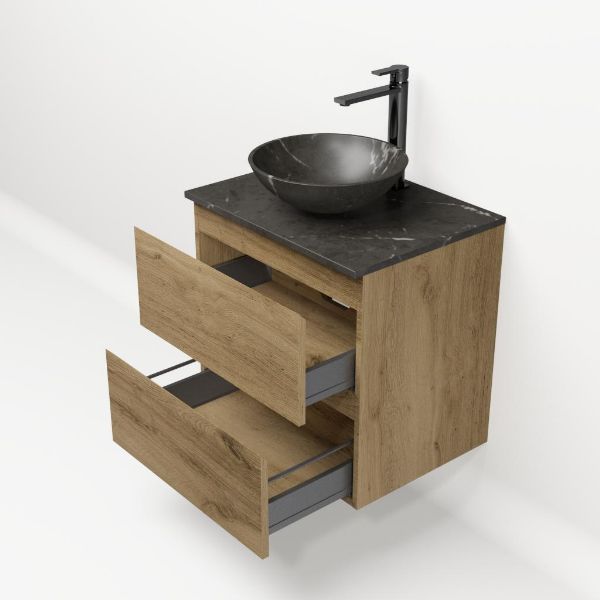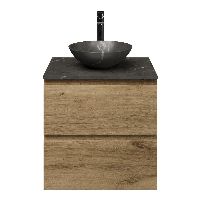 | | Bellanti Gisella/Lamina badmeubel 60x46cm 2 laden warm eiken greeploos met afdekblad 2cm dikte natuursteen blue stone met kraangat(en) - exclusief waskom : waskom naar keuze |