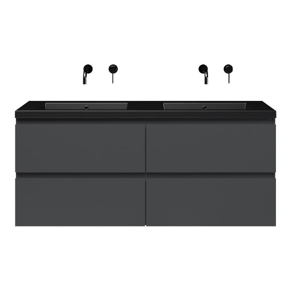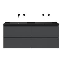 Bellanti Gisella/Esta badmeubel 140x46 4 softclose laden antraciet mat greeploos polystone wastafel dubbel zwart mat zonder kraangaten
