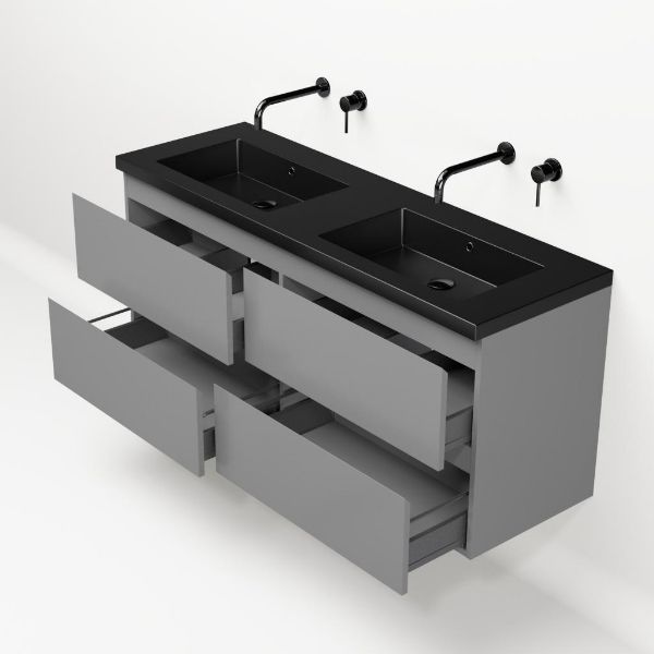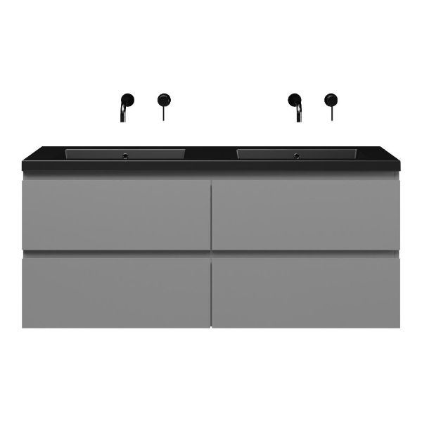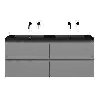 Bellanti Gisella/Esta badmeubel 140x46 4 softclose laden licht grijs mat greeploos polystone wastafel dubbel zwart mat zonder kraangaten