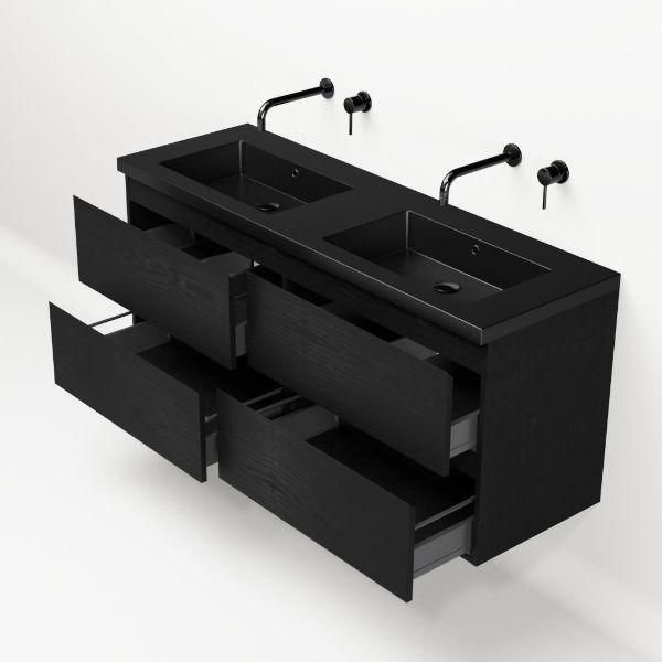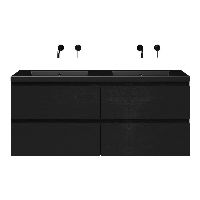 Bellanti Gisella/Esta badmeubel 140x46 4 softclose laden zwart mat eiken greeploos polystone wastafel dubbel zwart mat zonder kraangaten
