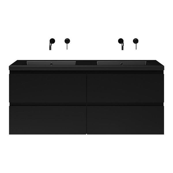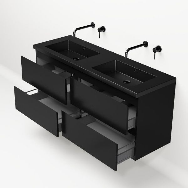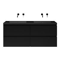 Bellanti Gisella/Esta badmeubel 140x46 4 softclose laden zwart mat greeploos polystone wastafel dubbel zwart mat zonder kraangaten