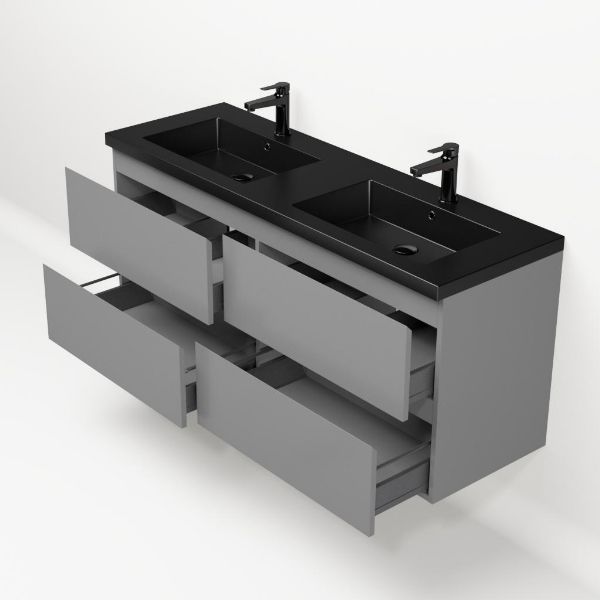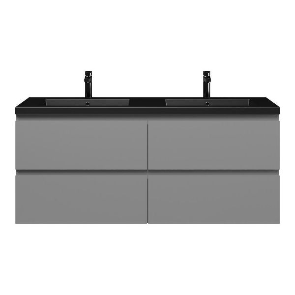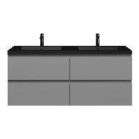 Bellanti Gisella/Esta badmeubel 140x46 4 softclose laden licht grijs mat greeploos polystone wastafel dubbel mat zwart met 2 kraangaten