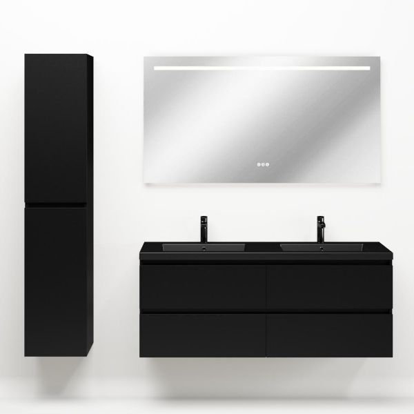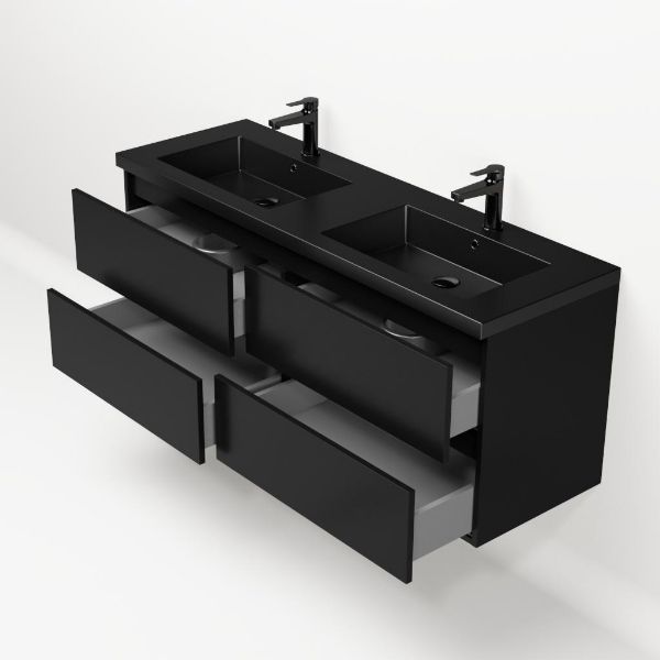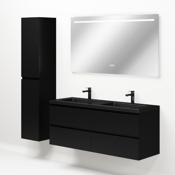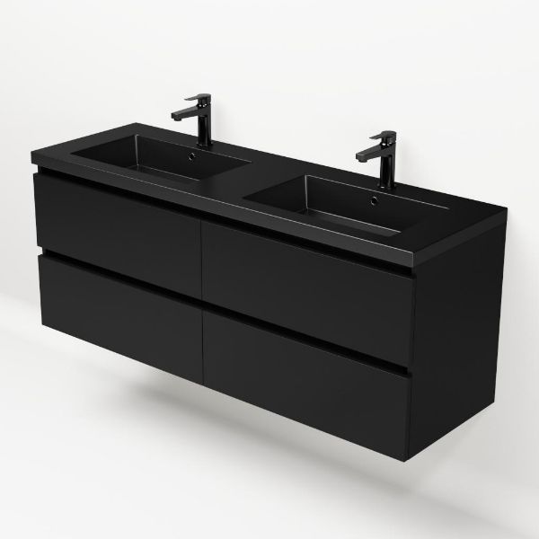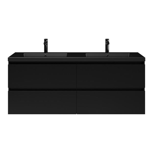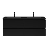 TrisLine Gia/Esta badmeubel 140x46 4 softclose laden mat zwart greeploos polystone wastafel dubbel mar zwart met 2 kraangaten