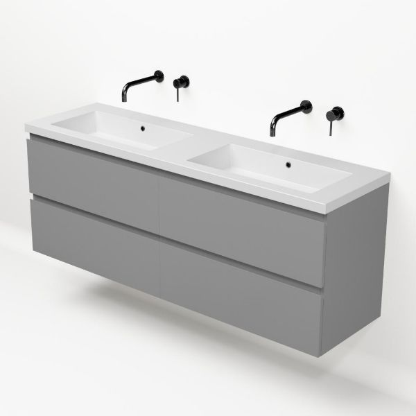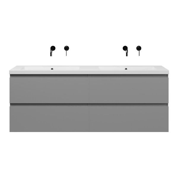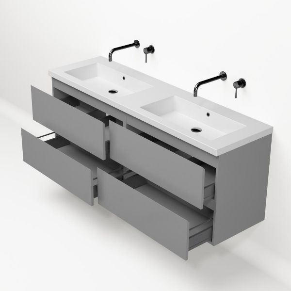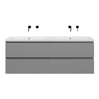| | Bellanti Gisella/Esta-Q badmeubel 160x46 4 softclose laden mat grijs greeploos quartz dubbele wastafel mat wit zonder kraangaten |