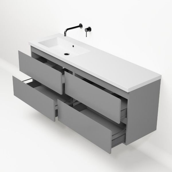 Bellanti Gisella/Esta badmeubel 160x46 4 softclose laden mat grijs greeploos polystone enkele wastafel links zonder kraangat