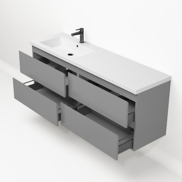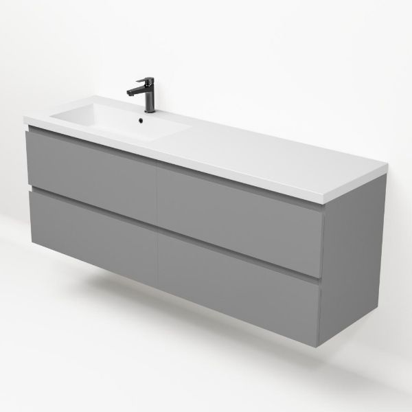 | Bellanti Gisella/Esta badmeubel 160x46 4 softclose laden mat grijs greeploos polystone enkele wastafel links wit met 1 kraangat |