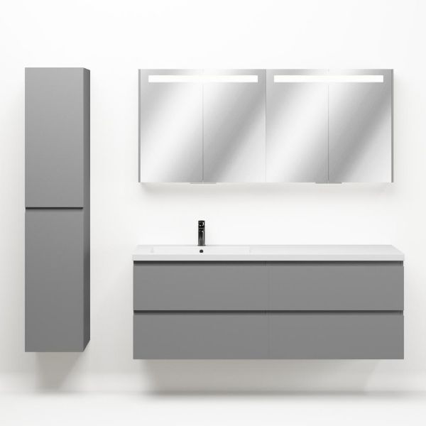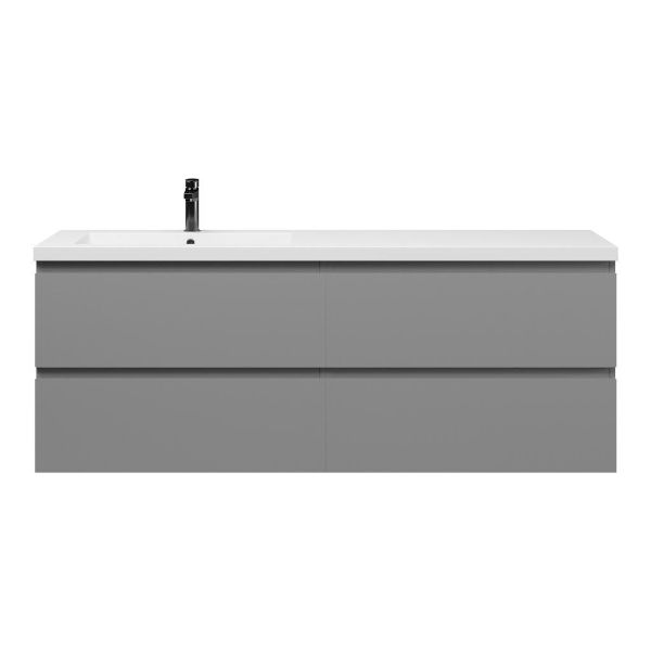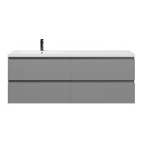 Greeploos badkamermeubel in de kleur licht grijs mat is 160 cm breed. De wastafel is vervaardig in polystone en heeft de kleur wit glans. Dit badkamermeubel met deze wastafel is leverbaar tussen de 60 cm t/m 200 cm