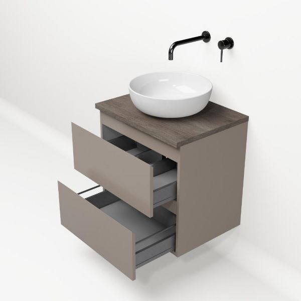 | | Bellanti Gisella/Lamina badmeubel 60x46cm 2 laden taupe greeploos met afdekblad 2.5cm dikte olm donker grijs - exclusief waskom : waskom naar keuze |