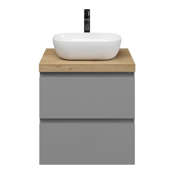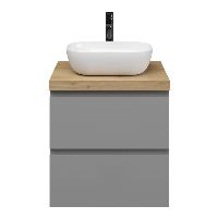 | | Bellanti Gisella/Lamina badmeubel 60x46cm 2 laden mat grijs greeploos met afdekblad 5cm dikte eiken natuur - exclusief waskom : waskom naar keuze |
