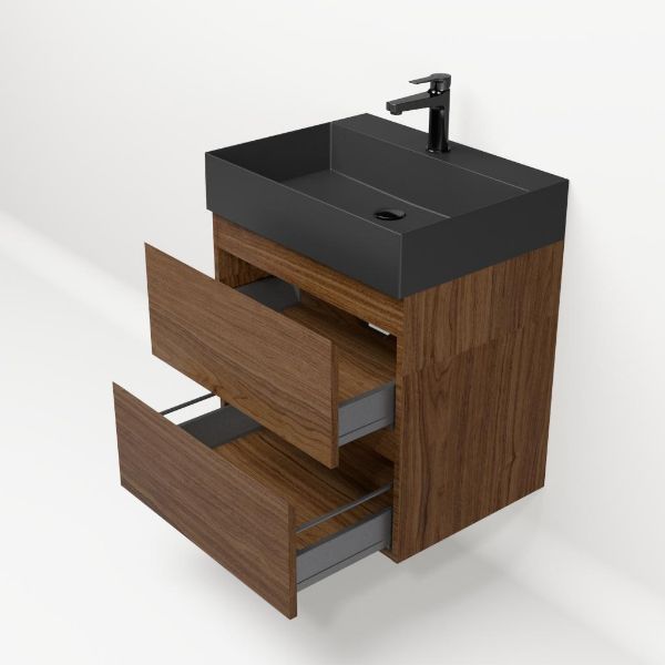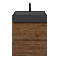 Bellanti Elena/Azzurra badmeubel 60x46 2 softclose laden warm noten greeploos keramische wastafel zwart mat met 1 kraangat