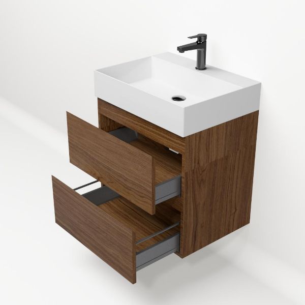 Bellanti Elena/Azzurra badmeubel 60x46 2 softclose laden warm noten greeploos keramische wastafel wit glans met 1 kraangat