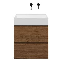 Bellanti Elena/Azzurra badmeubel 60x46 2 softclose laden warm noten greeploos keramische wastafel wit mat zonder kraangaten