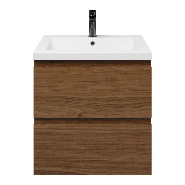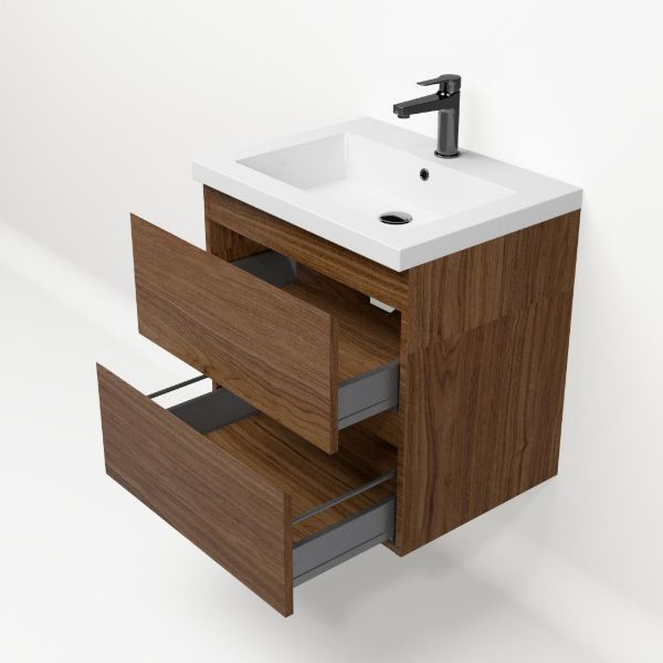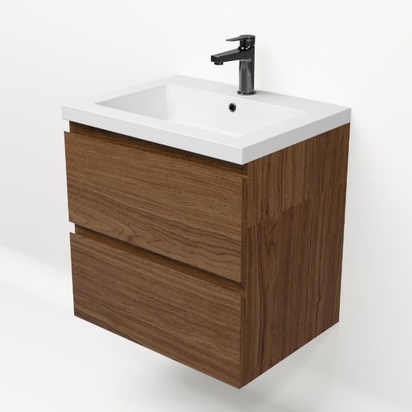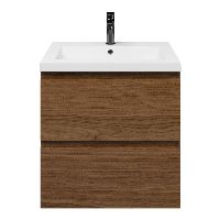 Bellanti Elena/Esta badmeubel 60x46 2 softclose laden warm noten greeploos polystone wastafel wit met 1 kraangat