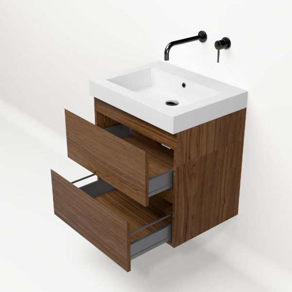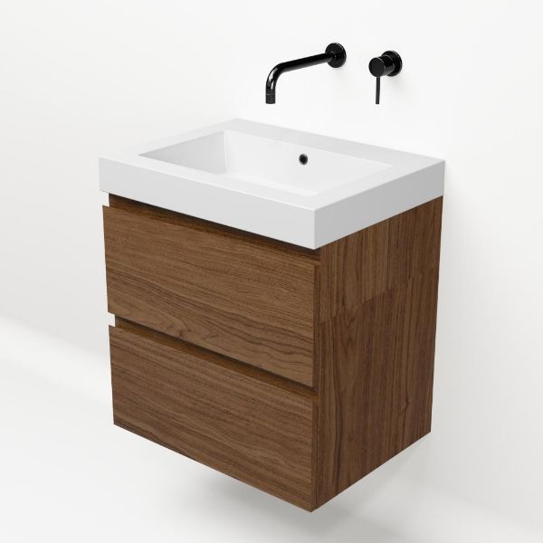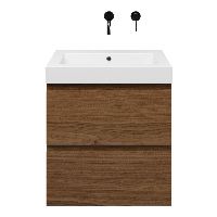 Bellanti Elena/Esta badmeubel 60x46 2 softclose laden warm noten greeploos polystone wastafel wit zonder kraangaten