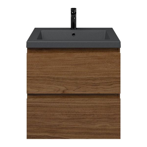 Bellanti Elena/Esta-Q badmeubel 60x46 2 softclose laden warm noten greeploos quartz wastafel mat grijs met 1 kraangat