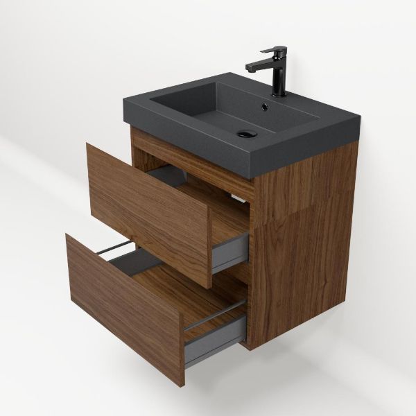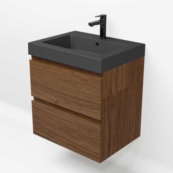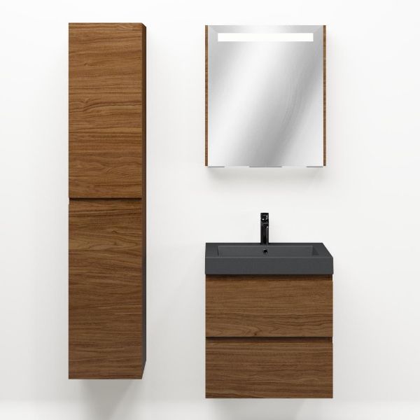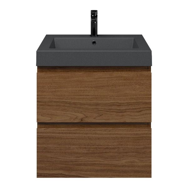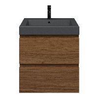 Bellanti Elena/Esta-Q badmeubel 60x46 2 softclose laden warm noten greeploos quartz wastafel mat grijs met 1 kraangat