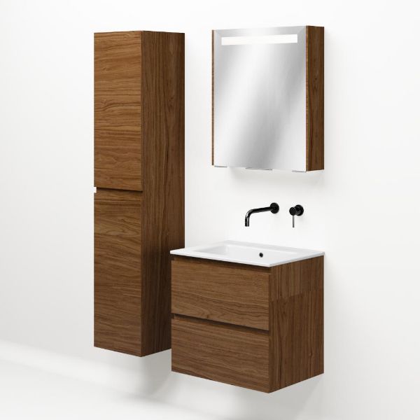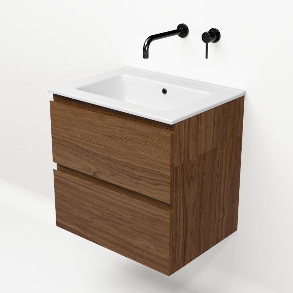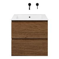 Bellanti Elena/Etna badmeubel 60x46 2 softclose laden warm noten greeploos keramische wastafel wit zonder kraangaten