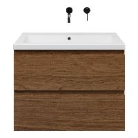 Bellanti Elena/Esta-Q badmeubel 80x46 2 softclose laden warm noten greeploos quartz wastafel mat wit zonder kraangaten