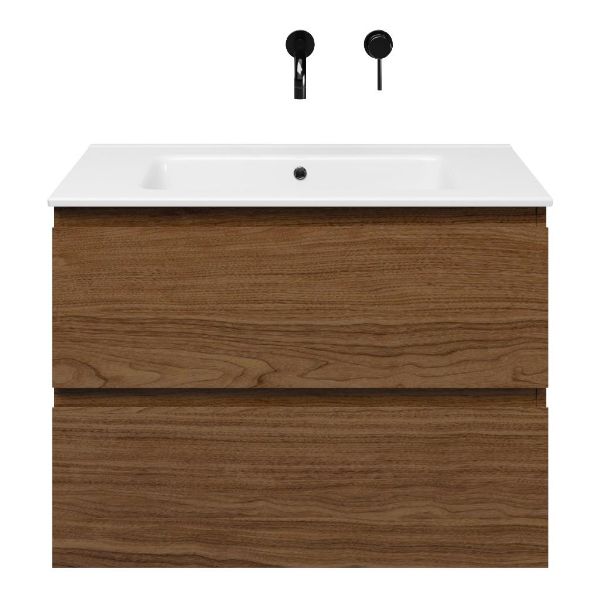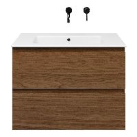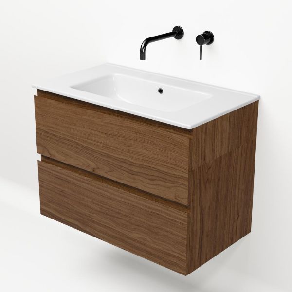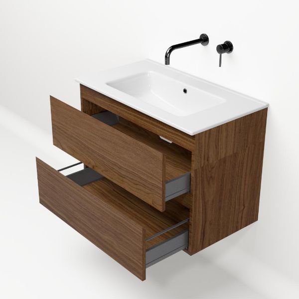 Bellanti Elena/Etna badmeubel 80x46 2 softclose laden warm noten greeploos keramische wastafel wit zonder kraangaten
