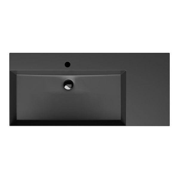 Bellanti Elena/Azzurra badmeubel 100x46 2 softclose laden warm noten greeploos keramische wastafel links zwart mat met 1 kraangat
