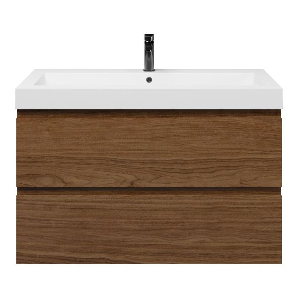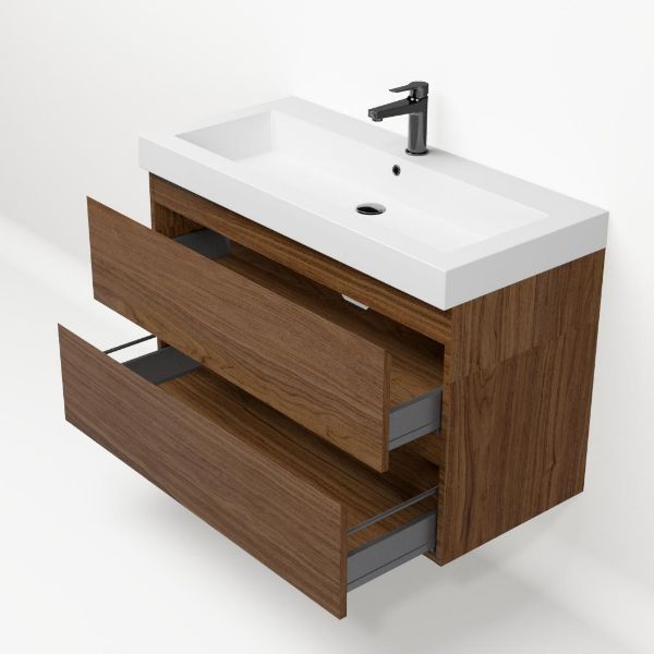 Bellanti Elena/Esta badmeubel 100x46 2 softclose laden warm noten greeploos polystone wastafel wit met 1 kraangat