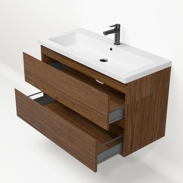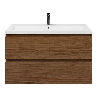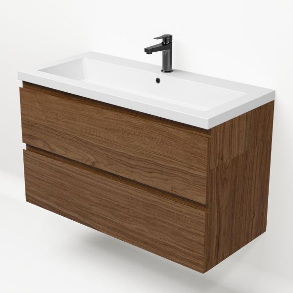 Bellanti Elena/Esta badmeubel 100x46 2 softclose laden warm noten greeploos polystone wastafel wit met 1 kraangat