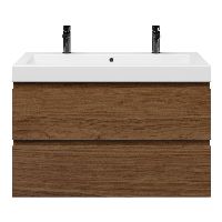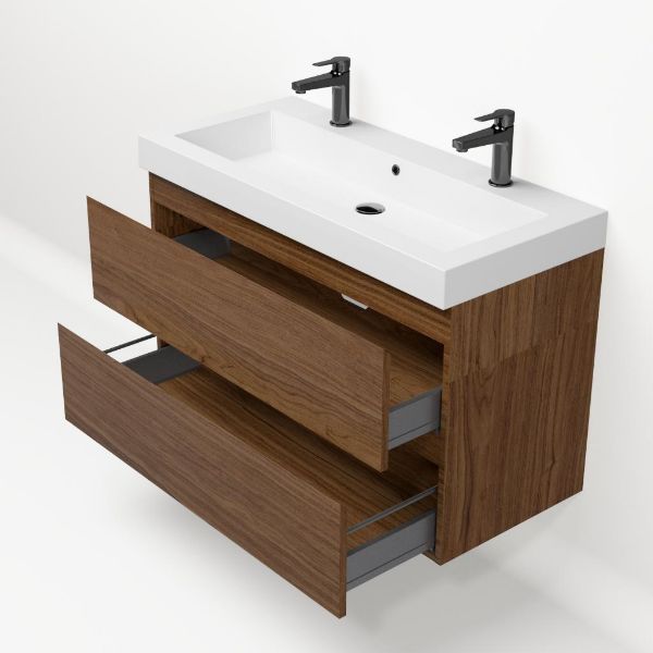 Bellanti Elena/Esta badmeubel 100x46 2 softclose laden warm noten greeploos polystone wastafel wit met 2 kraangaten