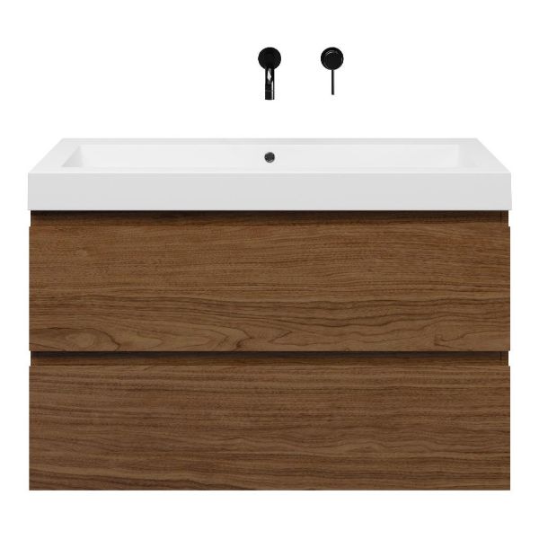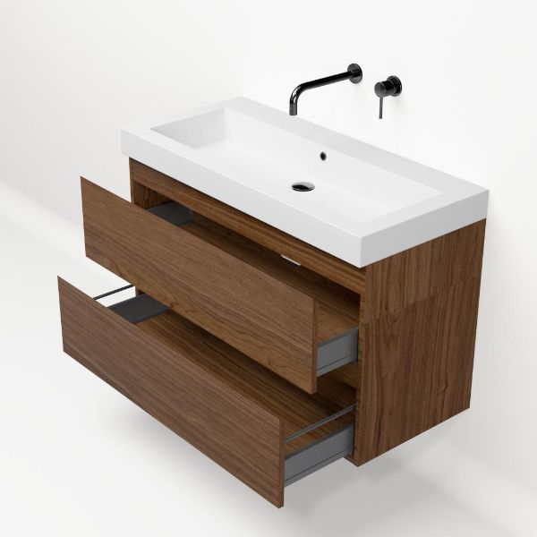 Bellanti Elena/Esta badmeubel 100x46 2 softclose laden warm noten greeploos polystone wastafel wit zonder kraangaten
