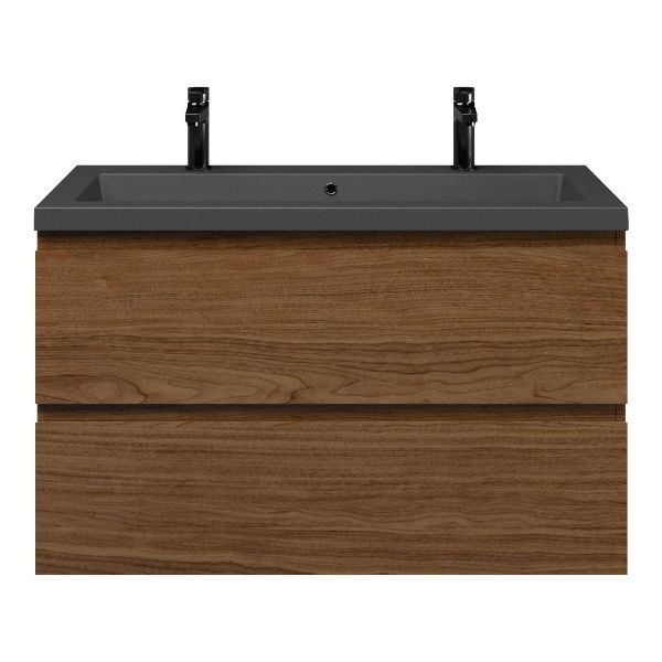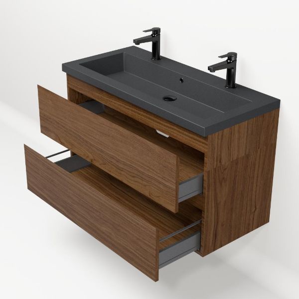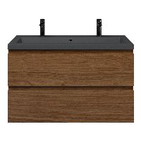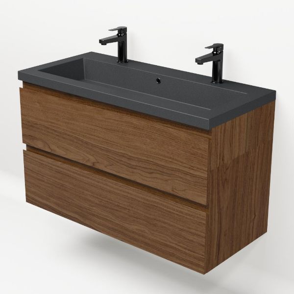 Bellanti Elena/Esta-Q badmeubel 100x46 2 softclose laden warm noten greeploos quartz wastafel mat grijs met 2 kraangaten