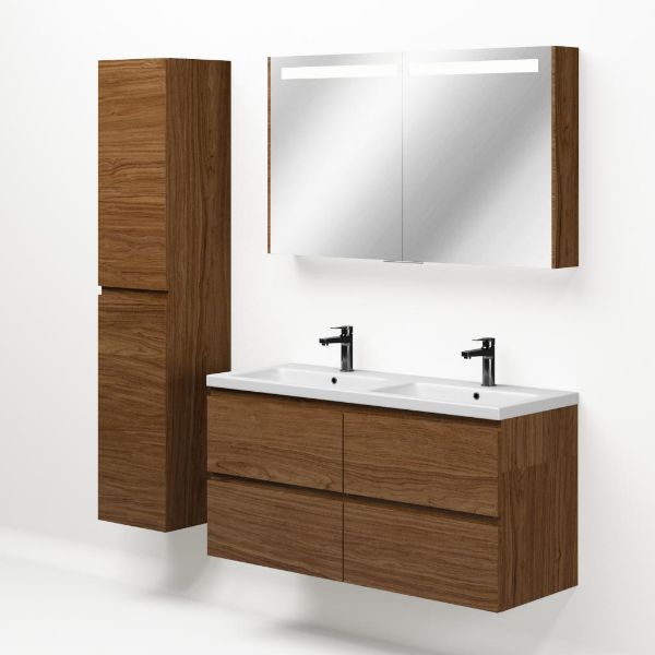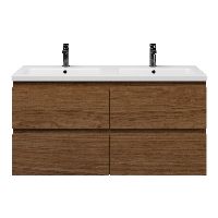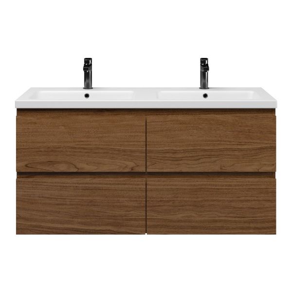 Bellanti Elena/Amelia badmeubel 120x46 4 softclose laden warm noten greeploos keramische wastafel dubbel wit mat met 2 kraangaten
